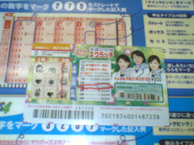 近くに宝くじコーナーがあったので500円追加して3枚スクラッチくじ買ってみた。