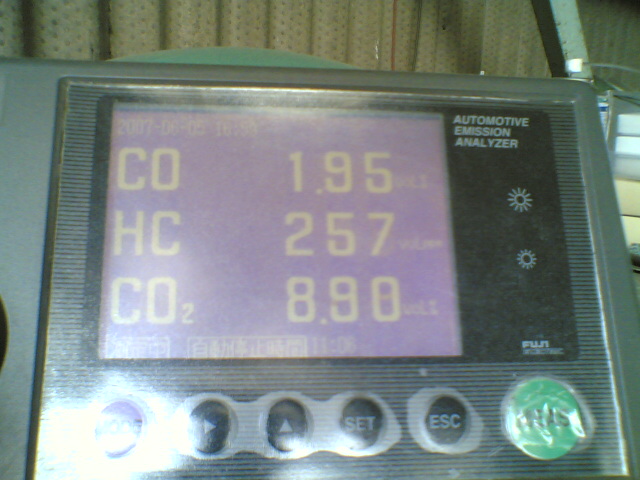 この時代の車は触媒も着いてないので、アイドルでCOが4.5%以下、HCが1200ppm以下が車検の基準となっております。
