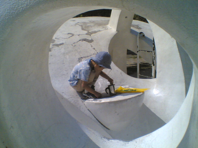 まるで純粋な彫刻かモニュメントのようだ。言い過ぎか。 上部に水が貯められていることを彷彿とさせつつも、給水塔然とした佇まいから一段抽象度を高めたその造形は、団地そのものの造形と絶妙のコントラストを醸し出している。流線型はソリッドタイプと対照的で、いわばリキッドタイプと言っても良いだろう。
